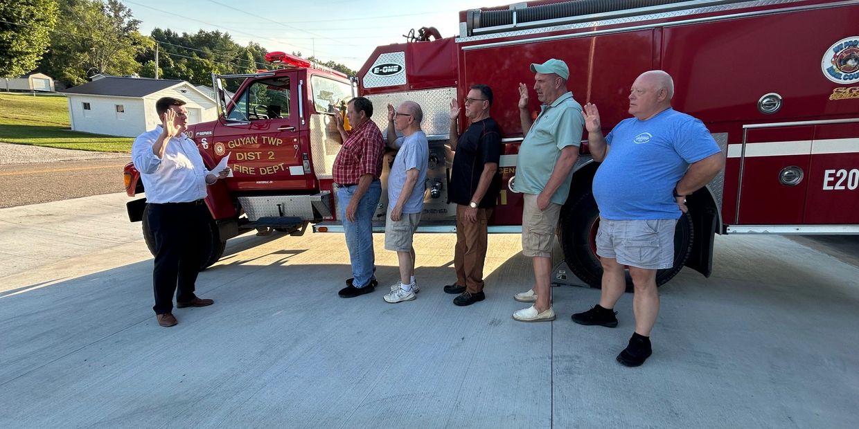Per the Ohio Revised Code, the governing board of the department was sworn in tonight. Administering the oath is Gallia County Prosecuting Attorney, Jason N. Holdren (Far left). Board members Roy Jones, President of the board; Bill Davis, secretary; with board members John Cardwell, Mike Daines, and Tommy Wright all assuming their roles.